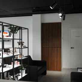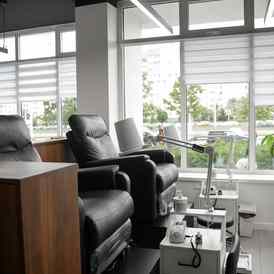 Интерьер центра выполнен в сдержанном современном стиле: светлое пространство, лаконичная цветовая гамма и деревянные элементы формируют спокойную, ненавязчивую атмосферу. Обстановка помогает настроиться на процедуру и комфортный уход за собой.